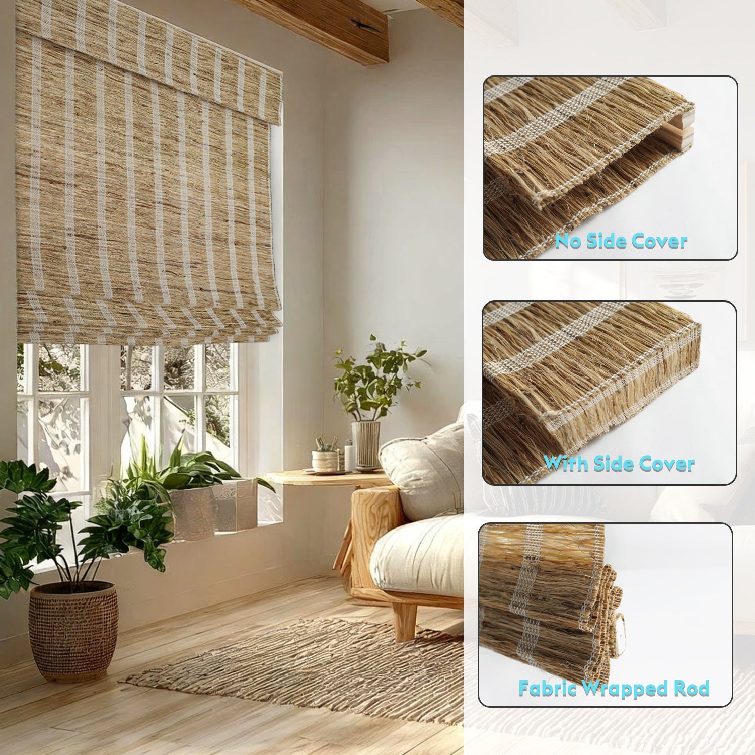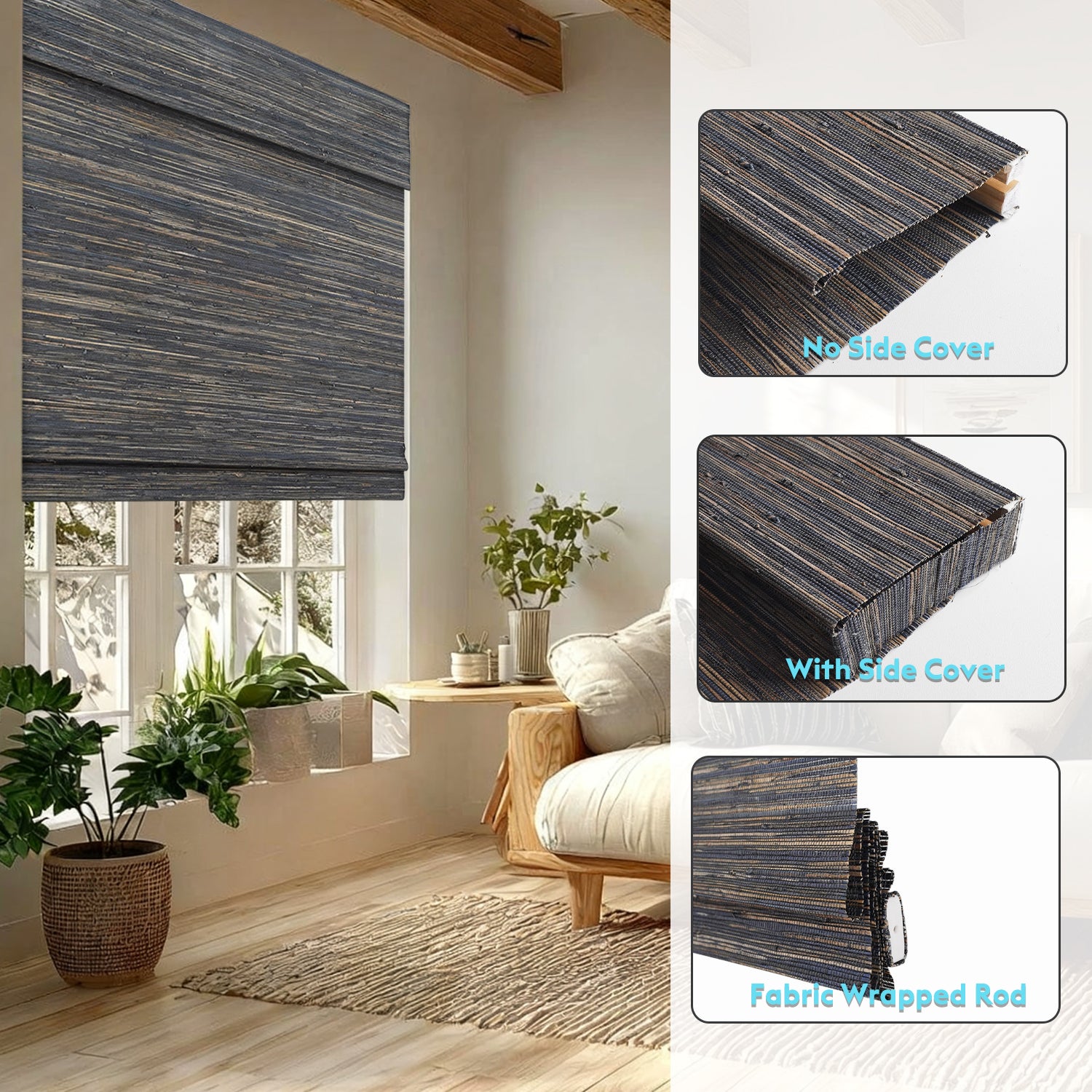 - As natural fibers grow and are woven in unique ways, variations in length, thickness, and curvature may occur, making each woven shade one of a kind.