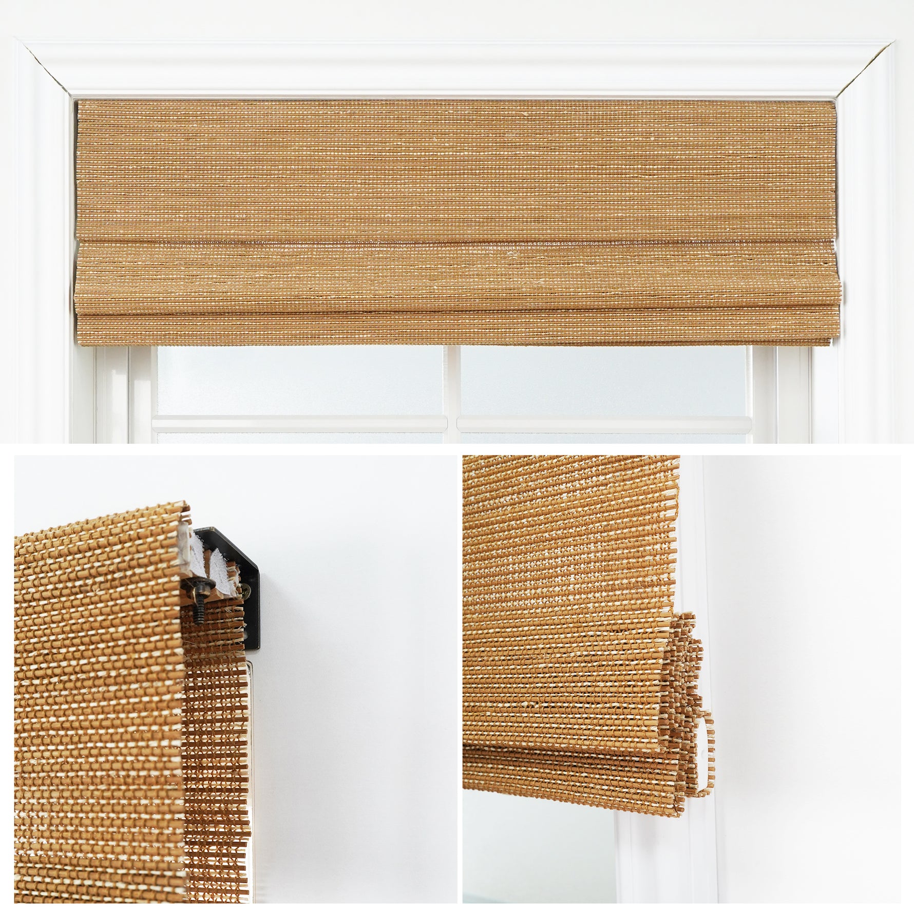 Bamboo shades can be installed as inside-mount or outside-mount.