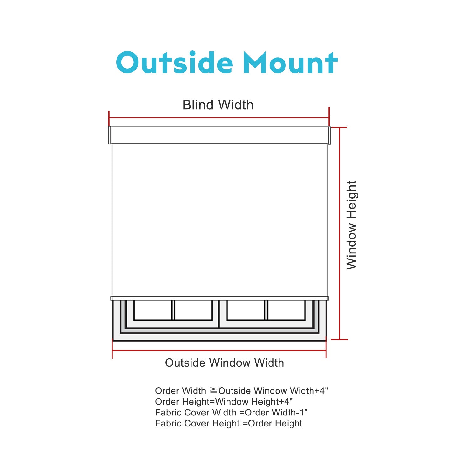 Measure the total width across the window from the outer edge of the frame. For optimal light blockage and enhanced privacy, we recommend adding 2 to 4 inches (1 to 2 inches on each side) to this measurement. Please use this adjusted width for your order.